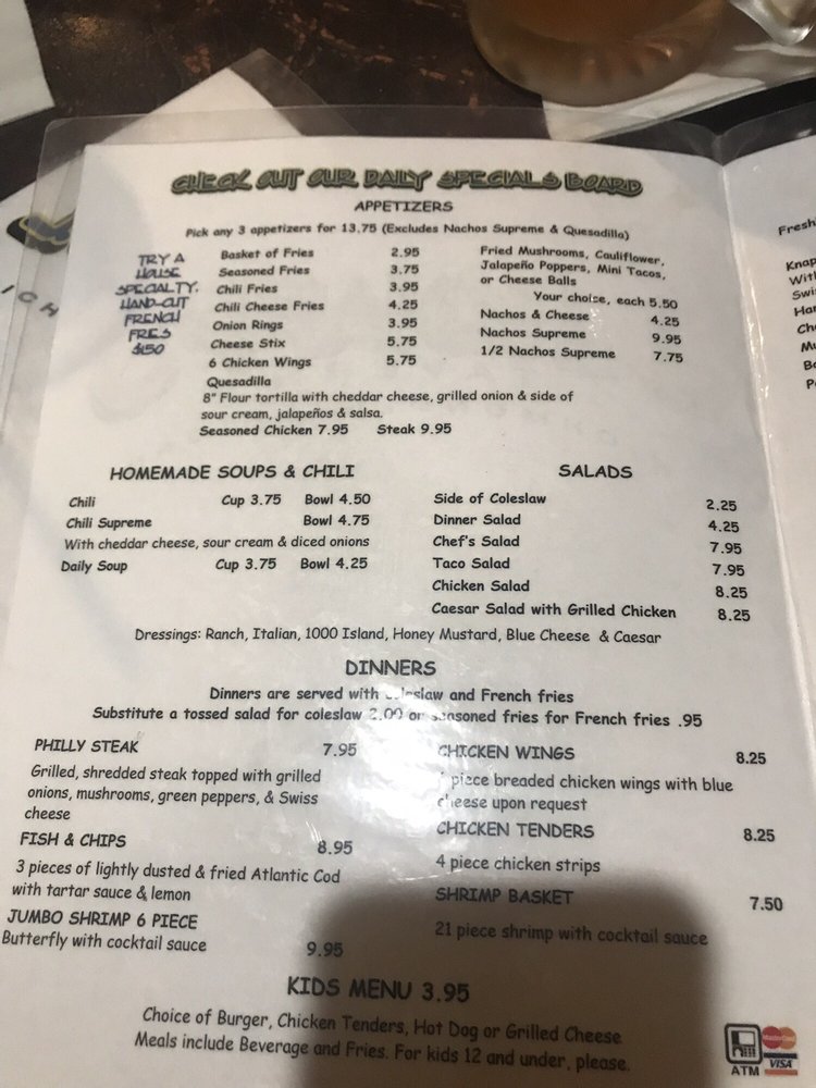 “ Seriously a bit divey- local bar'ish but awesome nonetheless. 2 beers (very cold beer), 2 cokes, nachos, fries and a burger for under $20 and the food was super delist! The wait staff is not going to wait on you hand and foot but hey they are polite and kind. They have a nice side deck the tables are a little awkward as they are long and set up for like groups of 10 ish bit just make yourself at home. Ask about the specials they always have something on special. ”